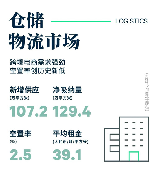 相較于跨境電商,其他小面積的高標倉需求則沒有在疫情結束后完全恢復,影響了租金表現(xiàn)。除跨境電商以外,年內(nèi)僅錄得相對較少的成交,如第三方物流和汽車零部件制造商等的成交。小面積空置的去化周期普遍較長。并且,國內(nèi)大型物流倉儲運營商普遍采取更積極進取的租賃策略,因此年內(nèi)租金有所松動,全年租金同比下跌2.3%。尤其在第二季度,受當季空置率高企影響,租金錄得年內(nèi)單季最大的環(huán)比跌幅(-1.8%)。而隨著下半年空置率重回個位數(shù)水平,租金跌幅顯著收窄并于第四季度維穩(wěn),錄得0.1%的環(huán)比跌幅至年末的每日每平方米39.1元。