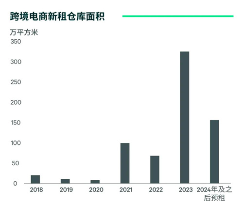 半托管模式為跨境電商賣家提供了兼具自主運(yùn)營(yíng)和物流售后效率的選項(xiàng)和更多的靈活性,進(jìn)一步拓寬了賣家基數(shù)和商品類型,也將相應(yīng)促進(jìn)國(guó)內(nèi)高標(biāo)倉(cāng)需求的增長(zhǎng)。與此同時(shí),更多商品品類的中小型賣家的入駐預(yù)計(jì)將推動(dòng)跨境電商租倉(cāng)需求向廣東以外的浙江、福建等區(qū)域蔓延。從CBRE目前了解的情況來(lái)看,預(yù)計(jì)在2024年后交付使用且已被跨境電商預(yù)租的高標(biāo)倉(cāng)面積已經(jīng)超過(guò)150萬(wàn)平方米。