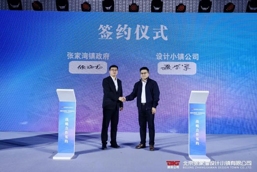 在接下來的簽約儀式環(huán)節(jié),張家灣鎮(zhèn)政府與設計小鎮(zhèn)公司簽署了戰(zhàn)略合作協(xié)議,圍繞鎮(zhèn)政府職能及張家灣設計小鎮(zhèn)平臺公司的主責主業(yè),雙方將聚焦設計小鎮(zhèn)建設運營,在存量土地及房產資源的盤活利用、授權項目建設、產業(yè)服務及運營、新能源、靜態(tài)交通、智慧城市、廣告位等領域合作,優(yōu)勢互補, 共謀發(fā)展。