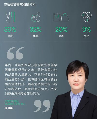 未來三季度,西安將迎來近44.4萬方的新增供應(yīng),其中不乏如西安萬象城及宜家薈聚等重量級項目的入市。同時,西安零售市場將在年內(nèi)度迎來更多形態(tài)獨特的零售項目,如文旅體融合項目體育之窗NMC中心及主打“體育?商業(yè)”的星璇廣場等優(yōu)質(zhì)項目的入市進一步推動創(chuàng)新業(yè)態(tài)和場景的發(fā)展支撐消費市場加速回暖,西安零售物業(yè)市場有望迎來新的發(fā)展機遇。