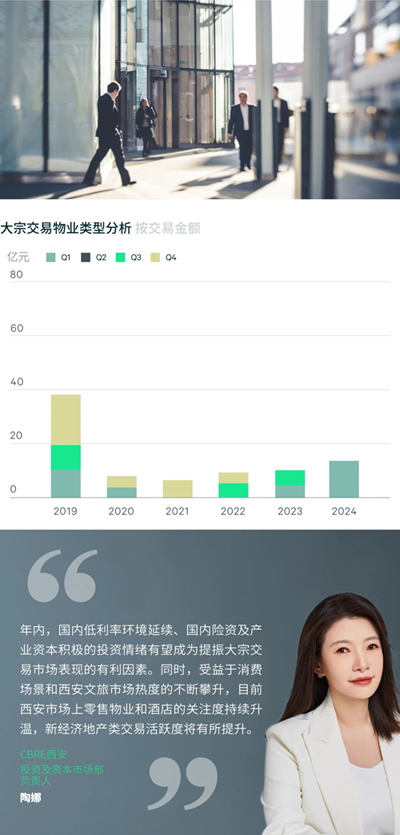 2024年第一季度,西安大宗交易市場共錄得3筆大宗成交,已知交易額達13.6億元。成交交易標的為一宗酒店、一宗商業(yè)樓宇及一宗物流園項目,均為資產(chǎn)交易,市場交易標的資產(chǎn)類型更趨多元。買家類型方面,本土化特征明顯,包括私人投資者、企業(yè)和本地國資企業(yè)。此外,區(qū)政府的城建公司及城更基金等國資背景機構(gòu)也開始下場物色優(yōu)質(zhì)資產(chǎn)。增值型投資機會將愈發(fā)受到關(guān)注。