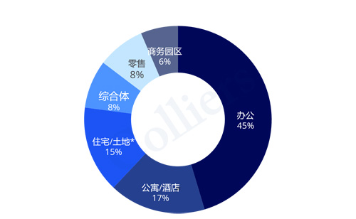 3.公寓及酒店為上海大宗成交市場占比第二位業(yè)態(tài)