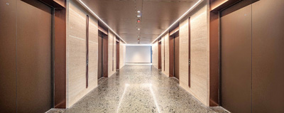 通州C01大廈總體量約6萬(wàn)平方米,其中辦公總面積約57415.48平方米和2843.74平方米地上商業(yè)面積,是170米總高的超高層建筑。其地上部分36層,地下部分為4層。高低區(qū)梯廳各分設(shè)6部進(jìn)口日立高速電梯,一共12部,另有2部貨梯和2部1層向車庫(kù)的轉(zhuǎn)換梯,構(gòu)成整個(gè)項(xiàng)目的垂直交通系統(tǒng)。比較獨(dú)特的是,由于我們的裙樓1-5層為富力商業(yè),所以本項(xiàng)目的辦公樓層是自9層起, 6、7層為項(xiàng)目預(yù)留的本區(qū)域僅有的地上具備餐飲條件的員工食堂區(qū)作為入住企業(yè)的辦公配套。