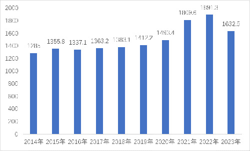 2014-2024年中國實際利用外商直接投資金額(億美元)