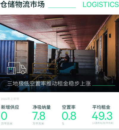 2024年第二季度無(wú)新增供應(yīng)入市,部分存量項(xiàng)目的空置率進(jìn)一步改善,令整體市場(chǎng)空置率環(huán)比下降2.3個(gè)百分點(diǎn)至0.4%的市場(chǎng)低位,吸納量共計(jì)4.5萬(wàn)平方米。市場(chǎng)的主要需求來自跨境電商,此外還錄得少量第三方物流的需求。2024年上半年,在以西音為首的跨境電商的強(qiáng)勢(shì)擴(kuò)張帶動(dòng)下,整體市場(chǎng)需求井噴,凈吸納量高達(dá)76萬(wàn)平方米,創(chuàng)歷史之最。強(qiáng)勁需求推動(dòng)下,市場(chǎng)平均租金半年度增長(zhǎng)2.1%至每月每平方米36.7元,漲幅高出去年同期0.6個(gè)百分點(diǎn)。