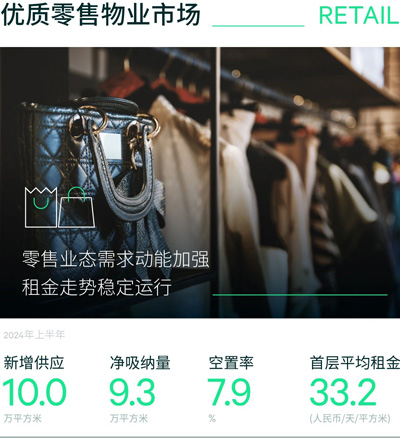 截至季末,全市空置率環(huán)比持平,較去年年末下行0.2個(gè)百分點(diǎn)至7.9%,上半年凈吸納量受新項(xiàng)目開業(yè)拉動(dòng),錄得9.3萬(wàn)平方米。租金方面,核心與次級(jí)商圈保持穩(wěn)健,但部分新興商圈項(xiàng)目業(yè)態(tài)調(diào)整仍面臨調(diào)整壓力,租金水平尚未完全恢復(fù)?傮w來(lái)看,全市購(gòu)物中心首層租金上半年保持平穩(wěn),維持在每天每平方米33.2元。