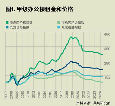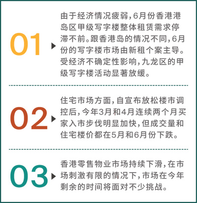 由于經(jīng)濟情況疲弱,6月份港島區(qū)甲級寫字樓整體租賃需求停滯不前,寫字樓租金則持續(xù)下跌。港島區(qū)的整體寫字樓空置率仍然高企,對業(yè)主帶來相當大的壓力,要通過減租來吸引租戶。