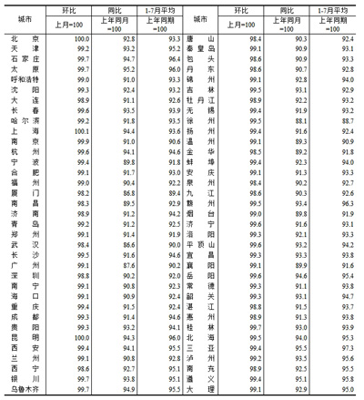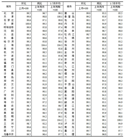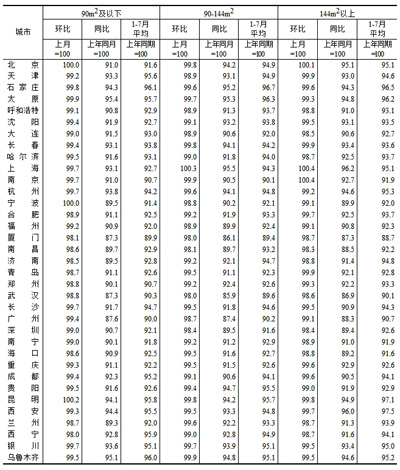 表1:2024年7月70個大中城市新建商品住宅銷售價格指數(shù)