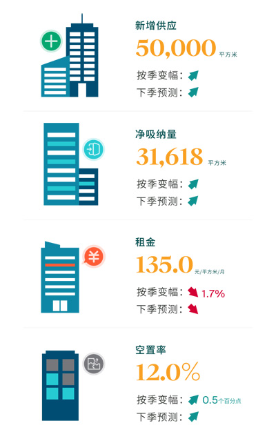 第二季度,廣州迎來本年的首個新增供應——保利南方財經(jīng)大廈,該項目的入市降為全市帶來達50,000平方米的新增供應。