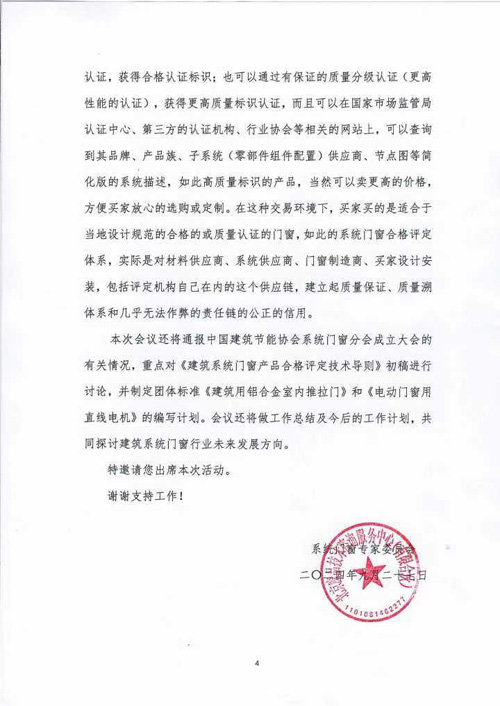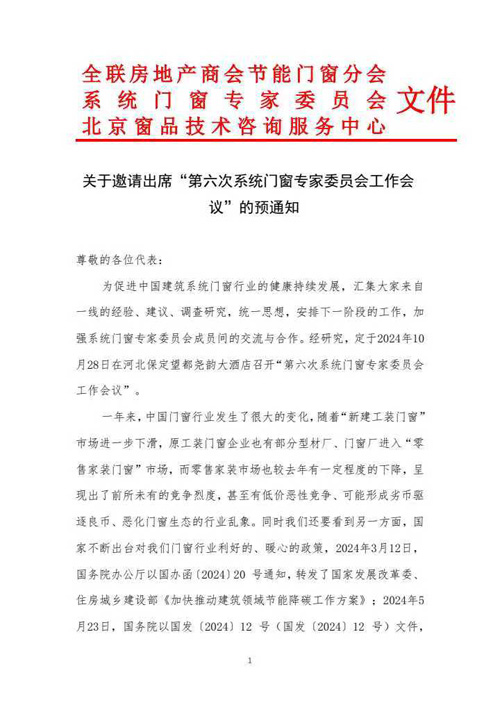 關于邀請出席“第六次系統(tǒng)門窗專家委員會工作會