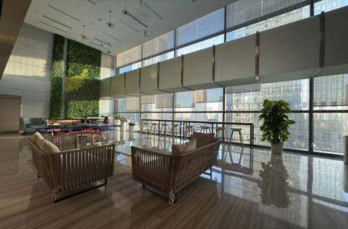 生態(tài)優(yōu)先,以綠色為發(fā)展底色。憑借粵港澳大灣區(qū)春暖花開、面朝大海的地理優(yōu)勢,大廈積極與國際認證標準接軌,采用甲級空間標準和配置,將生態(tài)低碳與智能科技相結(jié)合,通過實施照明改造、冷凝水回收、雨污分流、科學用電、園林綠化、四害消殺等措施,打造了綠意盎然、健康環(huán)保的公園式辦公環(huán)境。