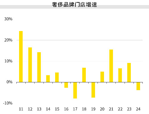 數(shù)據(jù)來源:品牌官網(wǎng)、第一太平戴維斯市場研究部基于12個(gè)奢侈品牌在20座主要城市門店數(shù)量