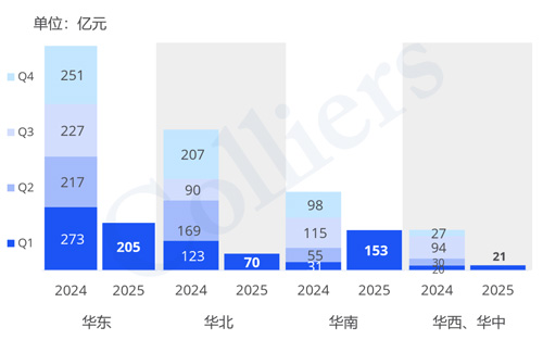 2025年第一季度全國各區(qū)域商業(yè)地產(chǎn)大宗成交金額