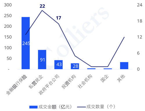 從成交數(shù)量分析,私營民企的投資意愿明顯,雖然投資金額不及傳統(tǒng)金融業(yè),但是數(shù)量上高于;同時多地地方政府平臺公司收購多起當(dāng)?shù)貎?yōu)質(zhì)房地產(chǎn)項目,如青島國資收購青島世貿(mào)52+項目,虹口國資法拍收購虹口商場項目