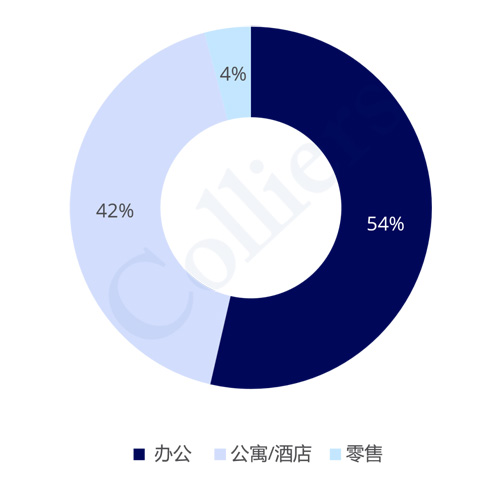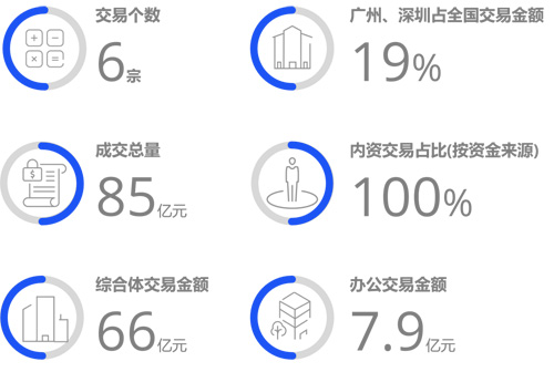 辦公和零售占比接近,主要交易有越秀海珠灣F6棟出售,奧園廣場負(fù)一層超市項目出售等交易