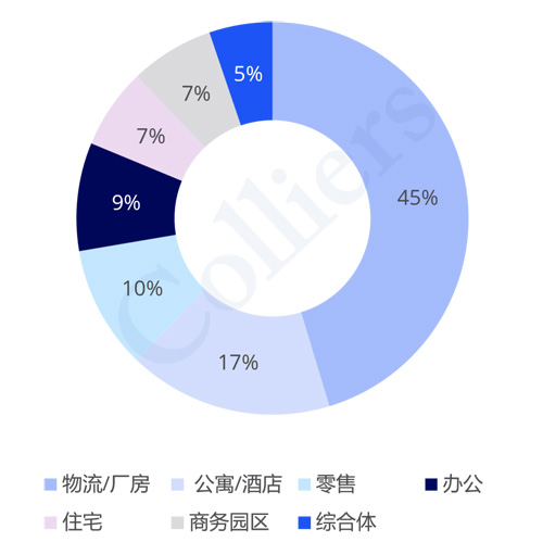 物流/廠房及公寓/酒店占比接近,成交金額分別為64億元和59億元