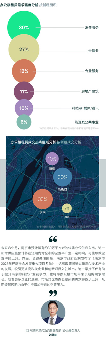 一季度,南京零售物業(yè)市場無新增供應(yīng)。南京消費市場延續(xù)復(fù)蘇態(tài)勢,1-2月社零總額同比增長4.0%,消費券發(fā)放與"首店經(jīng)濟(jì)"政策推動核心商圈客流增長超三成。智慧商圈升級帶動新街口、河西等商圈數(shù)字化消費占比突破40%,新能源汽車、綠色家電等品類銷售額同比翻倍,線上線下融合的即時零售模式滲透率提升至28%,凸顯南京消費市場創(chuàng)新活力與政策支持的協(xié)同效應(yīng)。