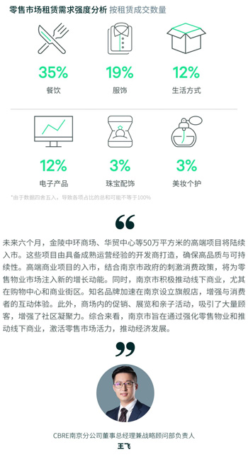 從需求分布來看,餐飲業(yè)態(tài)以35%的占比穩(wěn)居首位。其中,高性價比中餐占比達(dá)到42%,深受消費者喜愛。地方特色餐飲品牌如巡湘記和胡集酒肆正加速擴(kuò)張,進(jìn)一步滿足市場需求。西餐廳和亞洲食肆的占比分別為12%和8%,為消費者提供了多樣化的就餐選擇。在咖啡茶飲和烘焙甜品方面,這兩個品類各占8%,顯示出穩(wěn)定的市場需求。