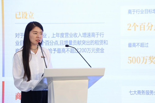 北京商辦知云商業(yè)運(yùn)營管理有限公司總經(jīng)理、華昱中心項(xiàng)目總經(jīng)理 云虹女士 詳細(xì)介紹了項(xiàng)目的入市租賃定位及運(yùn)營體系:"我們將通過'多維度運(yùn)營平臺(tái)'和'企業(yè)服務(wù)生態(tài)圈'兩大核心,為入駐企業(yè)提供全生命周期服務(wù)支持。