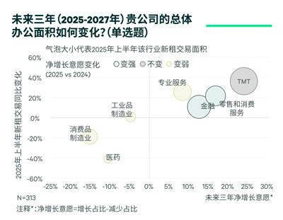 整體來(lái)看,凈增長(zhǎng)意愿位于正區(qū)間內(nèi)的科技、消費(fèi)、金融和專業(yè)服務(wù)上半年貢獻(xiàn)新租交易面積73%,這些主力需求行業(yè)更積極的擴(kuò)張意愿有望支撐辦公樓凈吸納量在2025至2027年期間穩(wěn)步增長(zhǎng)。