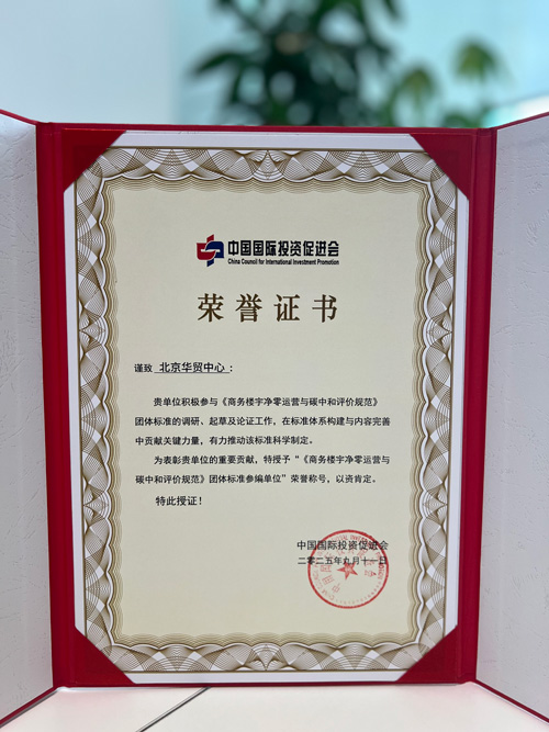 華貿(mào)中心榮獲"零碳園區(qū)產(chǎn)業(yè)方案生態(tài)伙伴"稱號(hào),并作為核心單位參與制定《商務(wù)樓宇凈零運(yùn)營(yíng)與碳中和評(píng)價(jià)規(guī)范》、《商務(wù)樓宇運(yùn)營(yíng)管理與服務(wù)績(jī)效評(píng)價(jià)》推動(dòng)行業(yè)低碳轉(zhuǎn)型,實(shí)現(xiàn)從實(shí)踐到標(biāo)準(zhǔn)輸出的跨越。