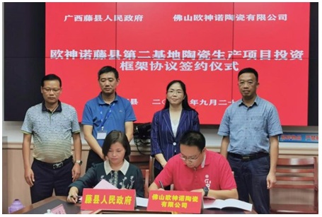 ▲廣西歐神諾籌建第二基地陶瓷生產(chǎn)項目投資框架協(xié)議簽約儀式現(xiàn)場