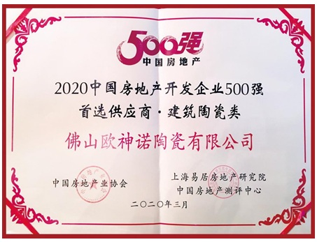 ▲歐神諾獲2020中國房地產(chǎn)開發(fā)企業(yè)500強首選供應(yīng)商品牌