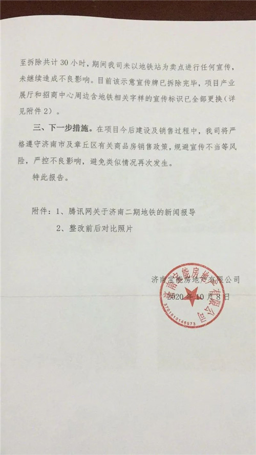 10月8日上午,該項(xiàng)目制定拆除方案,并立即開始施工拆除,同時(shí),該項(xiàng)目售樓處關(guān)于“地鐵”的所有宣傳資料也一并“下架”整改;