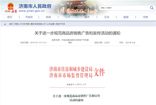 2019年5月,濟(jì)南市住建局聯(lián)合濟(jì)南市市場(chǎng)監(jiān)督管理局下發(fā)《關(guān)于進(jìn)一步規(guī)范商品房銷售廣告和宣傳活動(dòng)的通知》,明確不得利用規(guī)劃或在建中的學(xué)校、地鐵作為樓盤賣點(diǎn)宣傳。