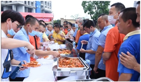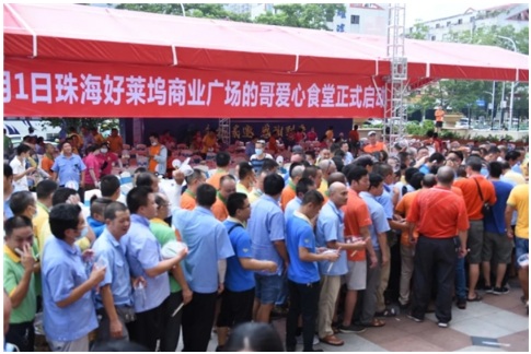 9月1日,近千名的哥的姐齊聚國(guó)維中央廣場(chǎng)城市展廳,開啟千人盛宴,共享美味午餐。自此,無論風(fēng)雨,國(guó)維集團(tuán)的的哥食堂每天準(zhǔn)時(shí)開放,為前來用餐的司機(jī)提供愛心午餐。每到中午時(shí)分,桂花北路上便多了一道亮眼的綠色風(fēng)景線。近千名的哥的姐共同用餐,大家的臉上都洋溢著幸福的笑容,有的哥表示,自己活了大半輩子,始終秉持天下沒有免費(fèi)的午餐這個(gè)觀念,但是國(guó)維集團(tuán)居然讓他能毫無顧忌的吃到免費(fèi)的午餐。