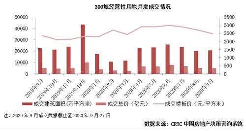 土地市場方面,9月一線城市成交建面為412萬平方米,平均樓板價(jià)降至11203元/平方米,環(huán)比下跌超過4成;二線城市成交建面為3667萬平方米,環(huán)比減少了28%;平均樓板價(jià)達(dá)4366元/平方米。