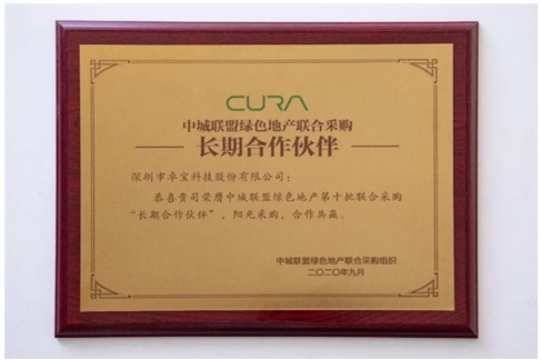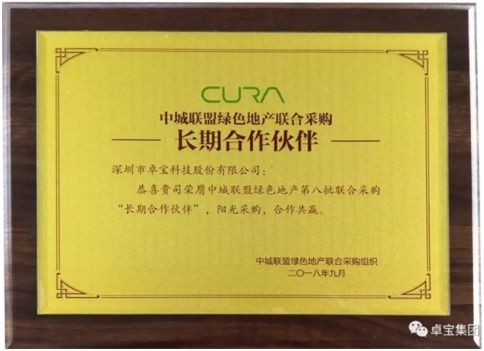 2018年9月,卓寶科技榮膺中城聯(lián)盟綠色地產(chǎn)第八批聯(lián)合采購“長期合作伙伴”。