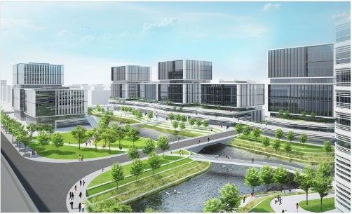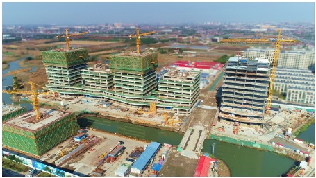 漕河涇趙巷科技綠洲首批結(jié)構(gòu)封頂?shù)貕K,容積率2.5,包含5棟小高層辦公載體,2棟7層,3棟12層。聘請國際著名建筑設(shè)計團隊GMP擔(dān)綱設(shè)計,建筑設(shè)計注重“綠色、生態(tài)”,充分利用青浦江南水鄉(xiāng),河網(wǎng)密布特色,采用大塊面玻璃幕墻,展現(xiàn)“與水為鄰”的科技園區(qū)環(huán)境,結(jié)構(gòu)設(shè)計:梁、板、樓梯采用PC結(jié)構(gòu),樓板采用預(yù)應(yīng)力雙T板,是“大空間”辦公樓設(shè)計施工的典范。