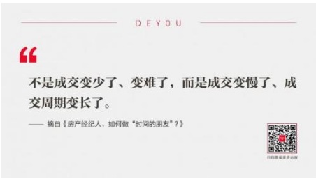 當(dāng)交易周期拉長,一個(gè)人現(xiàn)在再要去干房產(chǎn)中介這一行,對能力的要求就非常高了。他不再只是賣房子的推銷員,他要是置業(yè)顧問,他要能夠提供專業(yè)的參考意見,他更要誠實(shí)可信,可以為自己說出去的話負(fù)責(zé)。