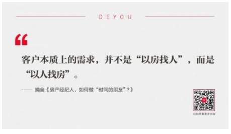 曾經(jīng)的房產(chǎn)中介賺差價(jià)、打信息差,甚至為了提高銷售效率,給客戶看更少的房,通俗點(diǎn)講,就是這套你買不買,不買馬上就賣了。但現(xiàn)在,在德佑內(nèi)部,我們關(guān)注一個(gè)指標(biāo)叫:一帶多看。房產(chǎn)中介不是做信息不對稱的生意,而是做信息對稱的生意。房屋交易低頻且標(biāo)的額巨大,每個(gè)人可能經(jīng)歷的就是一次,往往客戶是處于非常迷茫的狀態(tài),現(xiàn)實(shí)中,最容易出現(xiàn)的問題是:客戶不知道自己不知道,同時(shí)也不知道自己應(yīng)該知道什么。