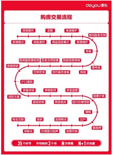 以北京為例,如果把登記房源、接受業(yè)主委托視為起點(diǎn),把消費(fèi)者完成物業(yè)交割視為終點(diǎn),完成一套二手房交易平均大概需要104天。其中,接受委托、匹配房源、撮合成交是經(jīng)紀(jì)服務(wù)的關(guān)鍵動(dòng)作,但在整個(gè)交易周期占比較小,約為38天;簽約后的面簽、貸款、繳稅環(huán)節(jié),耗時(shí)長且較容易出現(xiàn)消費(fèi)者投訴類問題,屬于后續(xù)服務(wù)性質(zhì)的工作。
