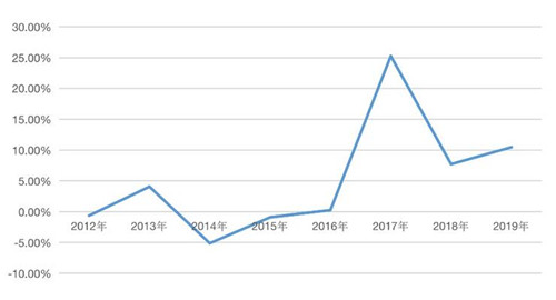 揚(yáng)州歷年商品住宅成交價(jià)格漲幅(%)