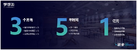 未來五年,夢想加計劃投入1億元資金,從“城市更新”、“智慧空間”、“金牌運營”3個方向的項目中,輸出有關(guān)于智能辦公、空間更新、運營管理等方面的經(jīng)驗,全面提升辦公空間服務(wù)行業(yè)的品質(zhì)。