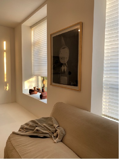 藝術(shù)作為上層生活的重要組成部分,其價(jià)值并非局限于居住空間的錦上添花,最重要的是與生活渾然天成。在優(yōu)山美地A7藝術(shù)空間二層,一扇玫瑰紫檀加竹面的雙面屏風(fēng),與古典家具相互輝映,相得益彰,呈現(xiàn)出一種東方生活素有的和諧之美與寧靜之美。透過屏風(fēng)是別具一格的畫室,更賦予了空間清新文雅的美學(xué)基調(diào),也彰顯出居住者溫文爾雅的氣質(zhì)。