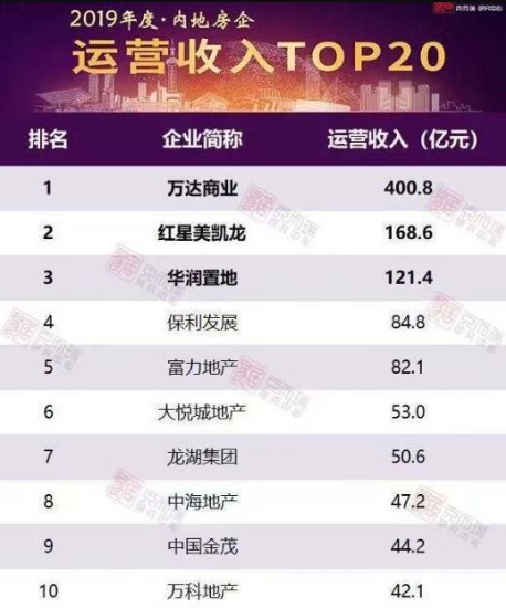 除了地產(chǎn)開發(fā),在商業(yè)運(yùn)營(yíng)方面,根據(jù)克而瑞發(fā)布的2019年度內(nèi)地房企運(yùn)營(yíng)收入TOP20榜單,紅星地產(chǎn)母公司紅星美凱龍控股集團(tuán)以168.6億元的好成績(jī)位列榜單第二。
