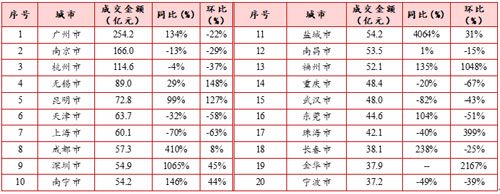 重點城市:TOP20城市成交總額環(huán)比下降20.1%