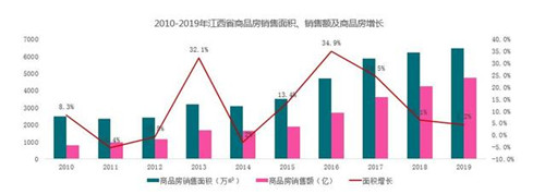 從銷售數(shù)據(jù)看,2019年,江西商品房銷售面積為6459萬平方米,增長(zhǎng)4.2%,增速近年來有所下降。其中住宅銷售面積5679萬平方米,增長(zhǎng)5.4%,增幅回落3.1個(gè)百分點(diǎn)。從銷售額來看,2019年江西商品房銷售額4710.4億元,增長(zhǎng)11.6%,其中,住宅銷售額4038.0億元,增長(zhǎng)14.6%。