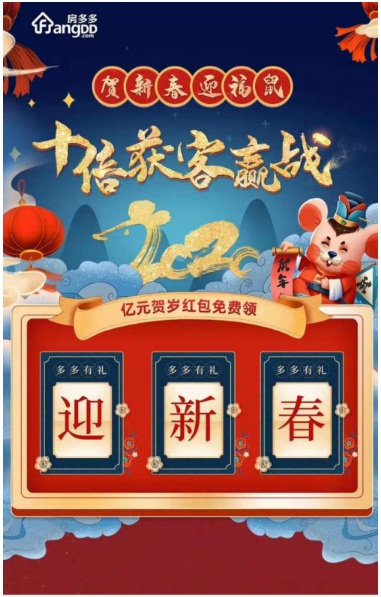 臨近春節(jié),年味漸濃,各行各業(yè)都在積極備戰(zhàn),搶灘“年貨節(jié)”。與往年不同的是,隨著“返鄉(xiāng)置業(yè)潮”的興起,房子逐漸成為“年貨”新寵,品牌房企摩拳擦掌開(kāi)展降價(jià)促銷活動(dòng),吸引購(gòu)房者。為迎戰(zhàn)“年貨節(jié)”這場(chǎng)營(yíng)銷大考,1月15日,房多多開(kāi)啟主題為“賀新春迎福鼠,十倍獲客贏戰(zhàn)2020”的新春賀歲活動(dòng),助力城市運(yùn)營(yíng)商在2020年的首秀中掘金。
