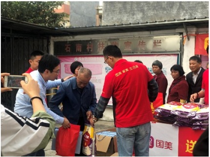 中國(guó)傳統(tǒng)農(nóng)歷新年即將來臨, 1月10日下午3時(shí),廣州國(guó)美攜手海珠區(qū)龍鳳街道驅(qū)車約100公里至從化市石南村開展春節(jié)扶貧慰問活動(dòng),為當(dāng)?shù)氐呢毨Ю相l(xiāng)送去新春的問候及過節(jié)物資,盡綿薄之力,希望讓他們感受到社會(huì)的溫暖與關(guān)懷,能過上一個(gè)歡樂、祥和溫暖的春節(jié)。以實(shí)際行動(dòng)踐行了廣州國(guó)美感恩、回饋社會(huì)的責(zé)任擔(dān)當(dāng),彰顯了國(guó)美企業(yè)的良好社會(huì)形象,受到街道辦事處及受助群眾的一致好評(píng)。