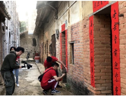 千門萬戶曈曈日,總把新桃換舊符。春聯(lián),是中國(guó)傳統(tǒng)新年的習(xí)俗,已有上千年的歷史,寄托人們辟邪除災(zāi)、迎祥納福的美好愿望,也為節(jié)日增加喜慶的氛圍。在此次活動(dòng)中,我們也提前請(qǐng)書法家寫好新春對(duì)聯(lián)、福字等,送與當(dāng)?shù)卮迕,并為外出工作的農(nóng)戶貼好對(duì)聯(lián),祝愿迎春納福千秋盛,招財(cái)進(jìn)寶萬代興。