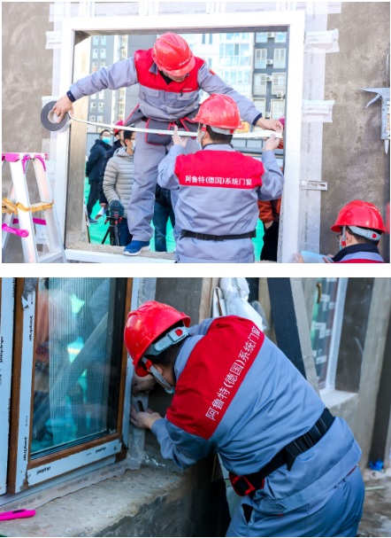 阿魯特代表隊安裝的德國Aluplast Ideal8000被動窗,整窗K值0.92,滿足寒冷地區(qū)使用,使用外掛式安裝工藝,開創(chuàng)性的使用了附框系統(tǒng),可以三維調(diào)節(jié),適應不同建筑高度的需要,解決了窗戶交叉施工的成品保護問題,有效解決了客戶換窗的需求。根據(jù)集成化,裝配式建筑的思路,增加了窗套及窗臺板設(shè)置,顏色一致,解決用戶的后顧之憂。