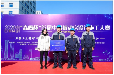 經(jīng)過激烈的比拼,榮譽名單出爐,哈爾濱森鷹窗業(yè)股份有限公司榮獲2020中國首屆被動房設(shè)計施工大賽一等獎,北京建筑節(jié)能研究發(fā)展中心主任龔海光為獲獎企業(yè)頒發(fā)榮譽。