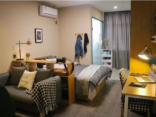 貝客公寓南京宏運大道店共有30間房,同樣為一室一廳的套間,已于2019年11月5日正式開業(yè)。不同的是,該公寓的服務與管理更加智能,公寓配備智能家電,定制環(huán)保家具,以及電子門禁,密碼門鎖,獨棟公寓設計,360°24小時輪崗監(jiān)控。產品裝修風格采用“北歐原木風”的設計理念,米白的素色背景墻,素凈淡雅的榻榻米,共同營造出安靜、舒適的居家氛圍。