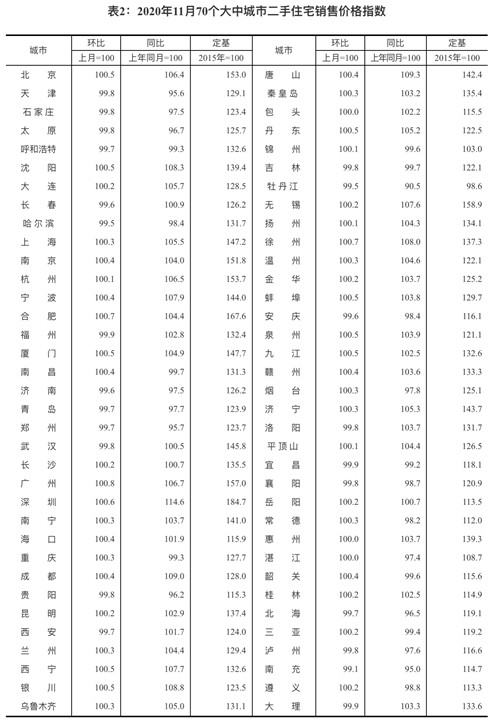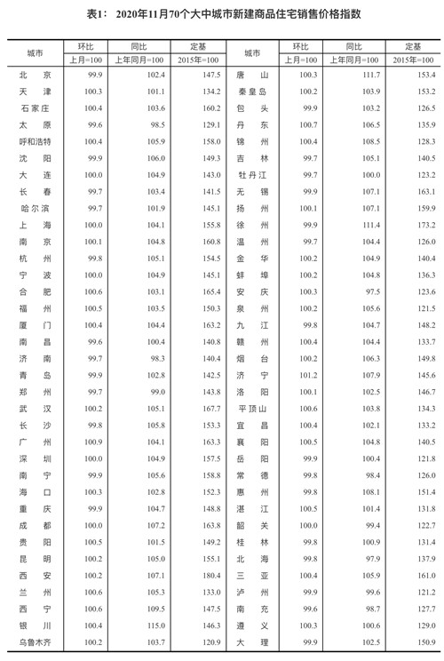 12月14日,國家統(tǒng)計局發(fā)布2020年11月份70個大中城市商品住宅銷售價格變動情況。從全國70大城市房價數(shù)據(jù)看,11月,70個大中城市中有36個城市的新建商品住宅價格上漲,比10月份減少了9個,房價上漲個數(shù)為今年疫情以來最少的月份;二手房方面,70個大中城市中房價上漲城市有44個,較上月增加5個。