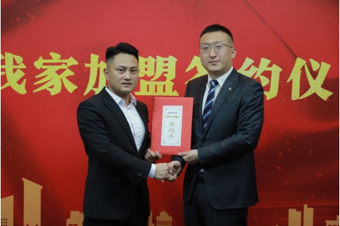 隨后,高志剛作為我愛(ài)我家集團(tuán)代表和楊樹(shù)成完成簽約,并為赤峰團(tuán)隊(duì)佩戴司徽,祝賀他們正式加入我愛(ài)我家大家庭,雙方出席人員還共同舉杯,慶祝簽約儀式圓滿成功。